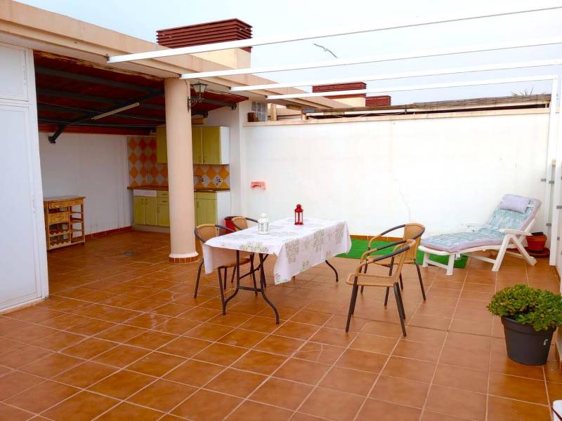 ÁTICO CON GRAN TERRAZA CON COCINA EXTERIOR. EN RESIDENCIAL CON PISCINA, PADEL, PARQUE INFANTIL. A 200M DE LA PLAYA.